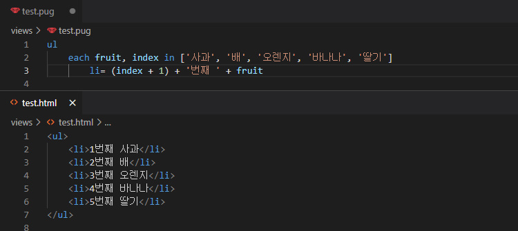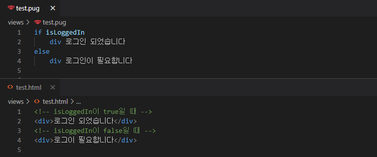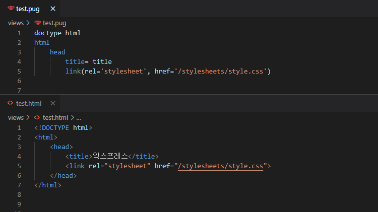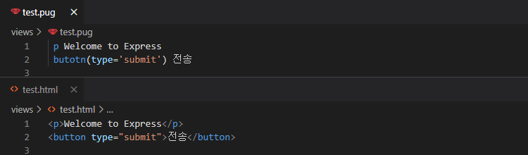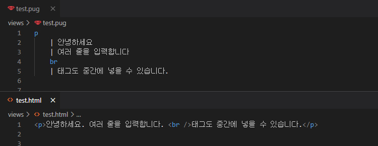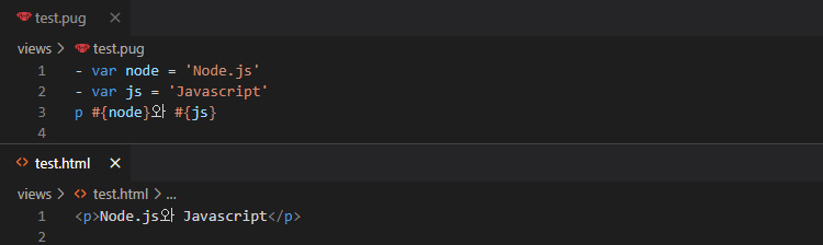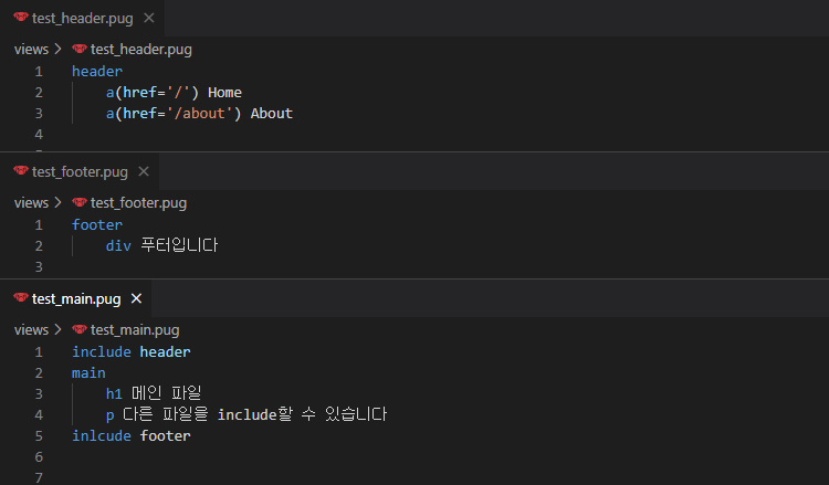 ๋ค๋ฅธ Pug๋ HTML ํ์ผ์ ๋ฃ์ ์ ์๋ค.