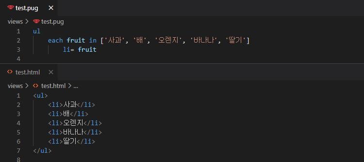 ์ด์ Pug์ ๋ฌธ๋ฒ์ ์ถฉ๋ถํ ๋ฐฐ์ ์ผ๋ ๊ธฐ๋ณธ์ ์ผ๋ก ์์ฑ๋ Pug ํ์ผ๋ค์ ์ดํด๋ณด์.