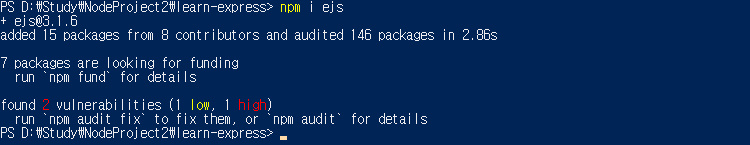 ejs ํจํค์ง๋ ๋ค์๊ณผ ๊ฐ์ด ์ค์นํด์ผ ํ๋ค.
