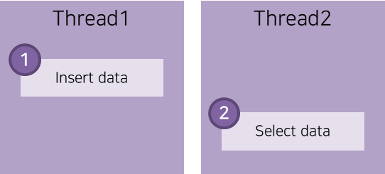 ex) ์ค๋ ๋1์ด ์ ํ๋ ํ ์ค๋ ๋2 ์คํ