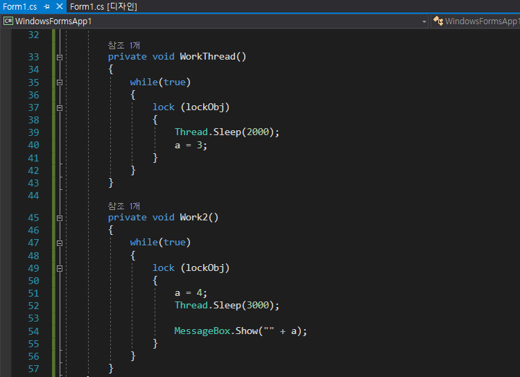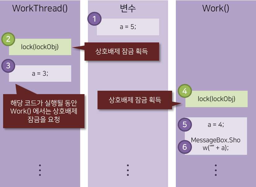 lock(lockObj); โ ์ํธ ๋ฐฐ์ ์ ๊ธ์ ํ๋