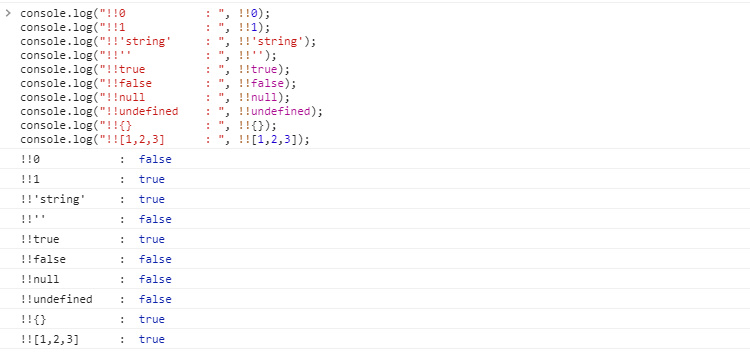 !!μ μν μ νΌμ°μ°μλ₯Ό λΆλ¦°κ°μΌλ‘ λ³ννλ κ²μ΄λ€. κ°μ²΄λ κ°μ΄ λΉμ΄μλ λΉ κ°μ²΄λΌλ trueλ‘ λ³νλλ κ²μ μ£Όμν΄μΌ νλ€.