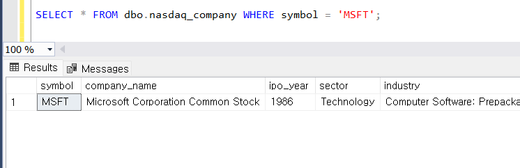symbol ์ด์ ๊ฐ์ด 'MSFT'์ธ ๋ฐ์ดํฐ ๊ฒ์ํ๊ธฐ