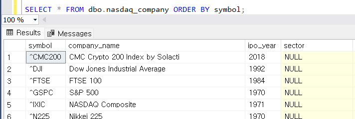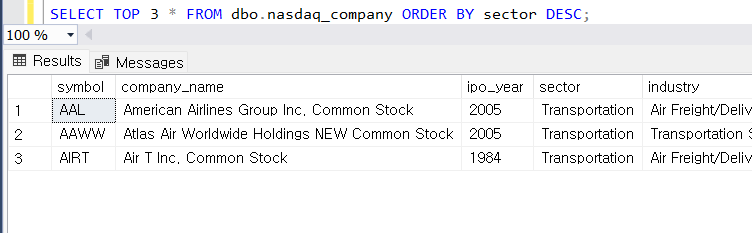 ORDER BY 문을 사용해 1개 열 기준으로 정렬