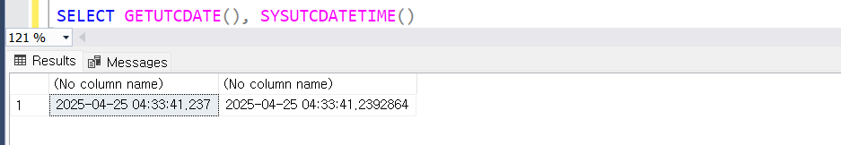 μλ²μ νμ¬ UTC λ μ§, μκ° λ°ννκΈ°: GETUTCDATE, SYSUTCDATETIME ν¨μ