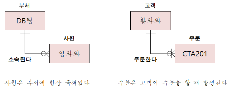- μ‘΄μ¬μ μν κ΄κ³ : μ¬μμ΄ λΆμμ μμλλ κ²μ²λΌ νμμ λ°λ₯Έ μ΄λ²€νΈμ μν΄ λ°μλλ μλ―Έκ° μλκ³ μ‘΄μ¬μ ννμ μν΄ κ΄κ³κ° νμ±λλ κ²