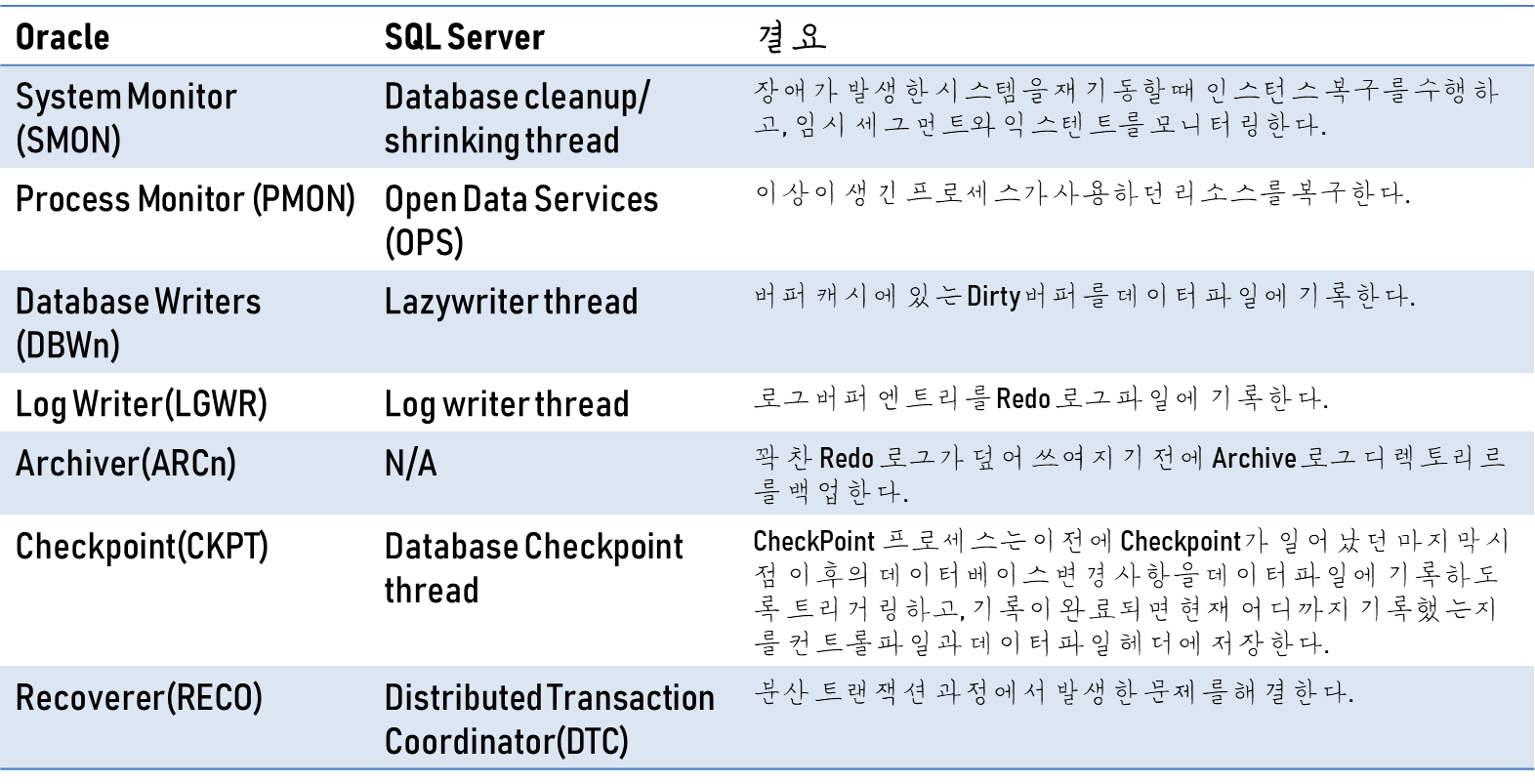 - ์ค์ค๋ก ์ฒ๋ฆฌํ๋๋ก ๊ตฌํ๋์ง ์์ ๊ธฐ๋ฅ(ex. ๋ฐ์ดํฐ ํ์ผ๋ก๋ถํฐ DB ๋ฒํผ ์บ์๋ก ๋ธ๋ก์ ์ ์ฌํ๋์ผ, Dirty ๋ธ๋ก์ ์บ์์์ ๋ฐ์ด๋์ผ๋ก์จ Free ๋ธ๋ก์ ํ๋ณดํ๋ ์ผ, Redo ๋ก๊ทธ ๋ฒํผ๋ฅผ ๋น์ฐ๋ ์ผ ๋ฑ)์ OS, I/O ์๋ธ์์คํ , ๋ฐฑ๊ทธ๋ผ์ด๋ ํ๋ก์ธ์ค๊ฐ ๋์ ์ฒ๋ฆฌํ๋๋ก ์์คํ Call์ ํตํด ์์ฒญ
