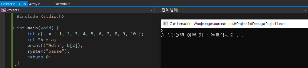 - λ°°μ΄μ μ μΈν μ΄νμλ κ·Έ μ΄λ¦ μμ²΄κ° ν¬μΈν° λ³μμ λμΌ