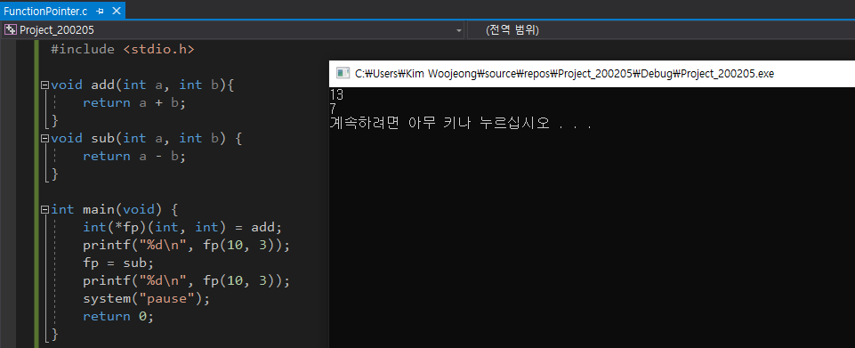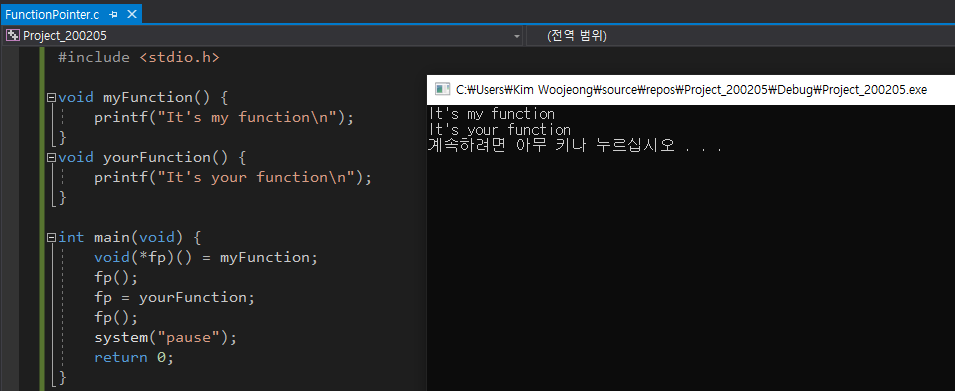 ν¨μ ν¬μΈν°λ₯Ό λ°ννμ¬ μ¬μ©νκΈ°