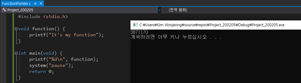 - ν¨μ μ΄λ¦μ λ©λͺ¨λ¦¬ μ£Όμλ₯Ό λ°ν