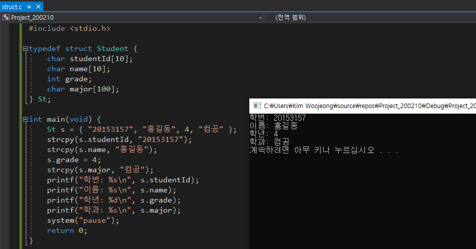 ๊ตฌ์กฐ์ฒด ๋ณ์์ ์ ์ธ๊ณผ ์ ๊ทผ