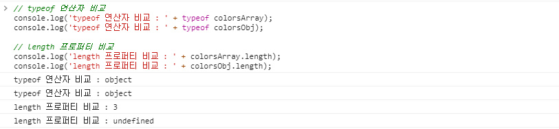 - λ°°μ΄κ³Ό κ°μ²΄μ μ°¨μ΄μ 1 - length νλ‘νΌν° μ‘΄μ¬ μ¬λΆ
