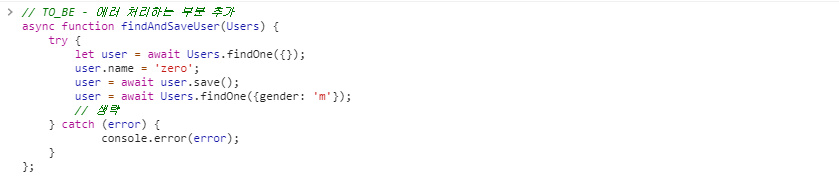 - ๊ฐ ์ฝ๋ฐฑ ํจ์๋ง๋ค ์๋ฌ๋ ๋ฐ๋ก ์ฒ๋ฆฌํด์ค์ผ ํ๋ค.