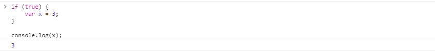 var๋ ํจ์ ์ค์ฝํ๋ฅผ ๊ฐ์ง๋ฏ๋ก if๋ฌธ์ ๋ธ๋ก๊ณผ ๊ด๊ณ์์ด ์ ๊ทผ ๊ฐ๋ฅํ๋ค. ํ์ง๋ง const์ let์ ๋ธ๋ก ์ค์ฝํ๋ฅผ ๊ฐ์ง๋ฏ๋ก ๋ธ๋ก ๋ฐ์์๋ ๋ณ์์ ์ ๊ทผํ ์ ์๋ค. ๋ธ๋ก์ ๋ฒ์๋ if, while, for, function ๋ฑ์ ์ค๊ดํธ์ด๋ค.