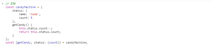 - candyMachine ๊ฐ์ฒด ์์ ์์ฑ์ ์ฐพ์์ ๋ณ์์ ๋งค์นญํด์ค๋ค. count์ฒ๋ผ ์ฌ๋ฌ ๋จ๊ณ ์์ ์์ฑ๋ ์ฐพ์ ์ ์๋ค.